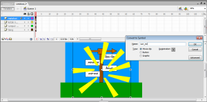 arah gunakan line tool setelah itu tekan tombol f8 dan beri nama tiang_mc
